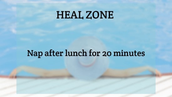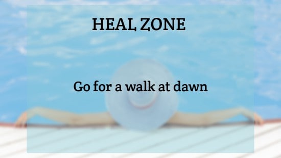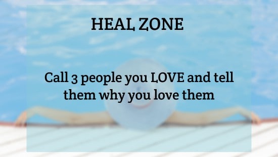 HEAL ZONE is the state where your body heals. Its when you are completely calm rested and in repair mode. Our Bootcamps are designed to help get you into this Heal Zone. Check out a sample list of what you can do to get in the Heal Zone.